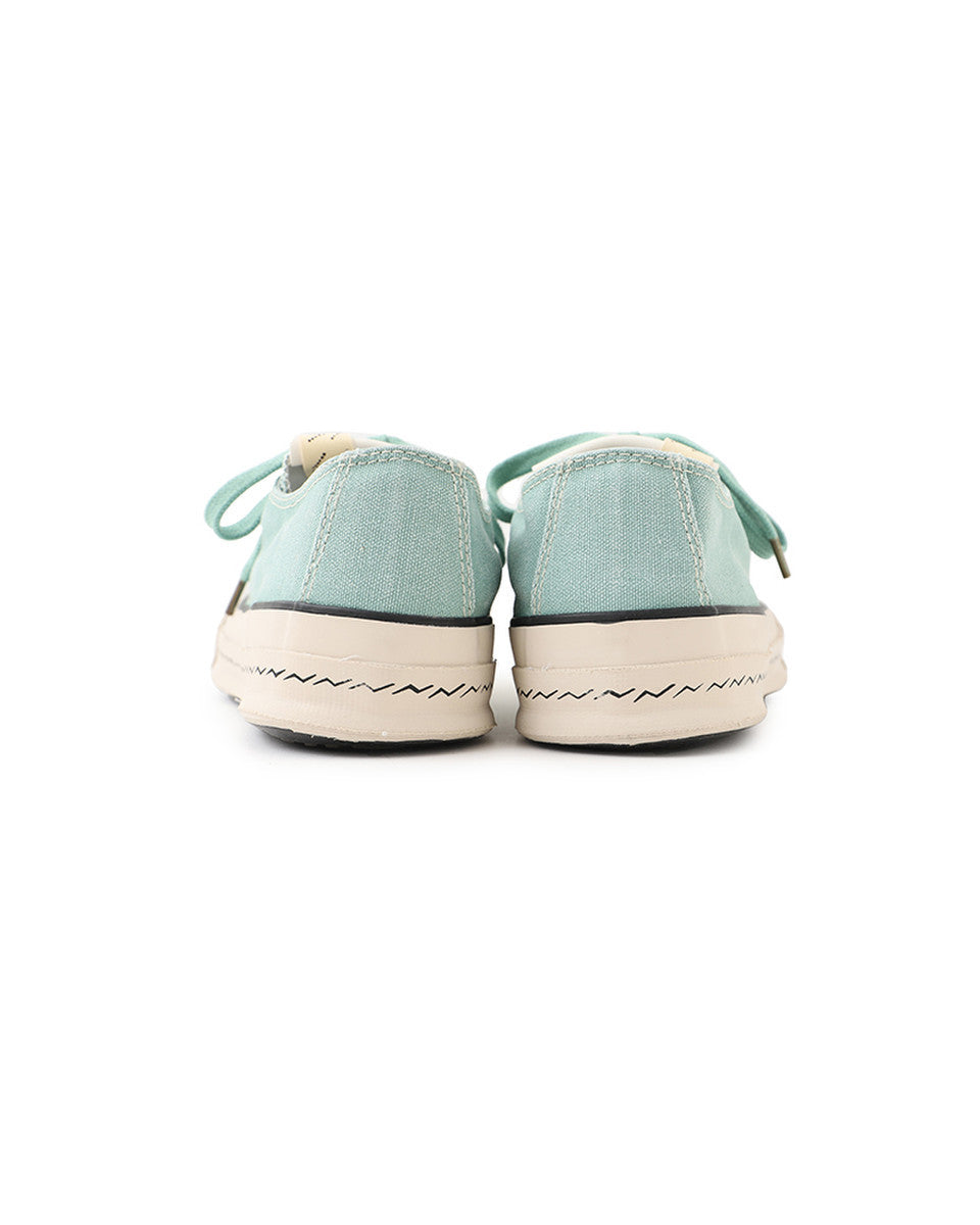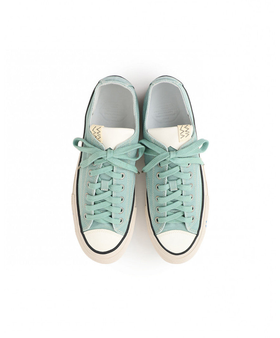 Traditional Japanese craftsmanship and vintage inspiration. The Skagway sneakers are made of green canvas with logo midsoles and cork insoles to absorb moisture. They are one of a kind and can be worn with anything.