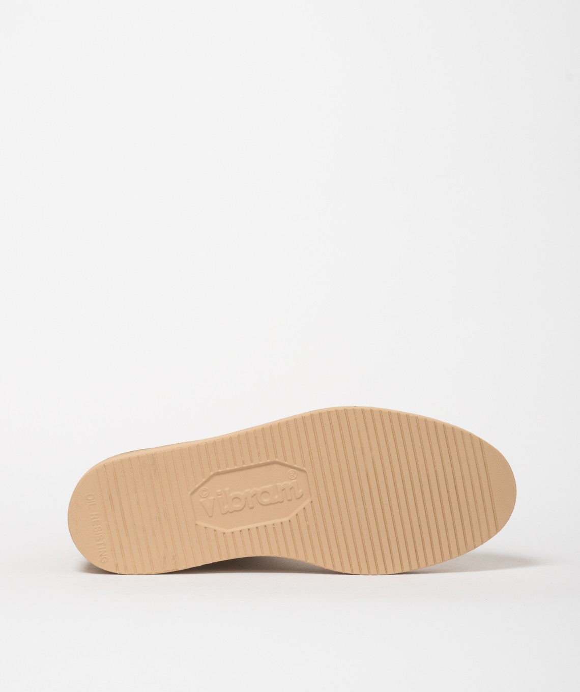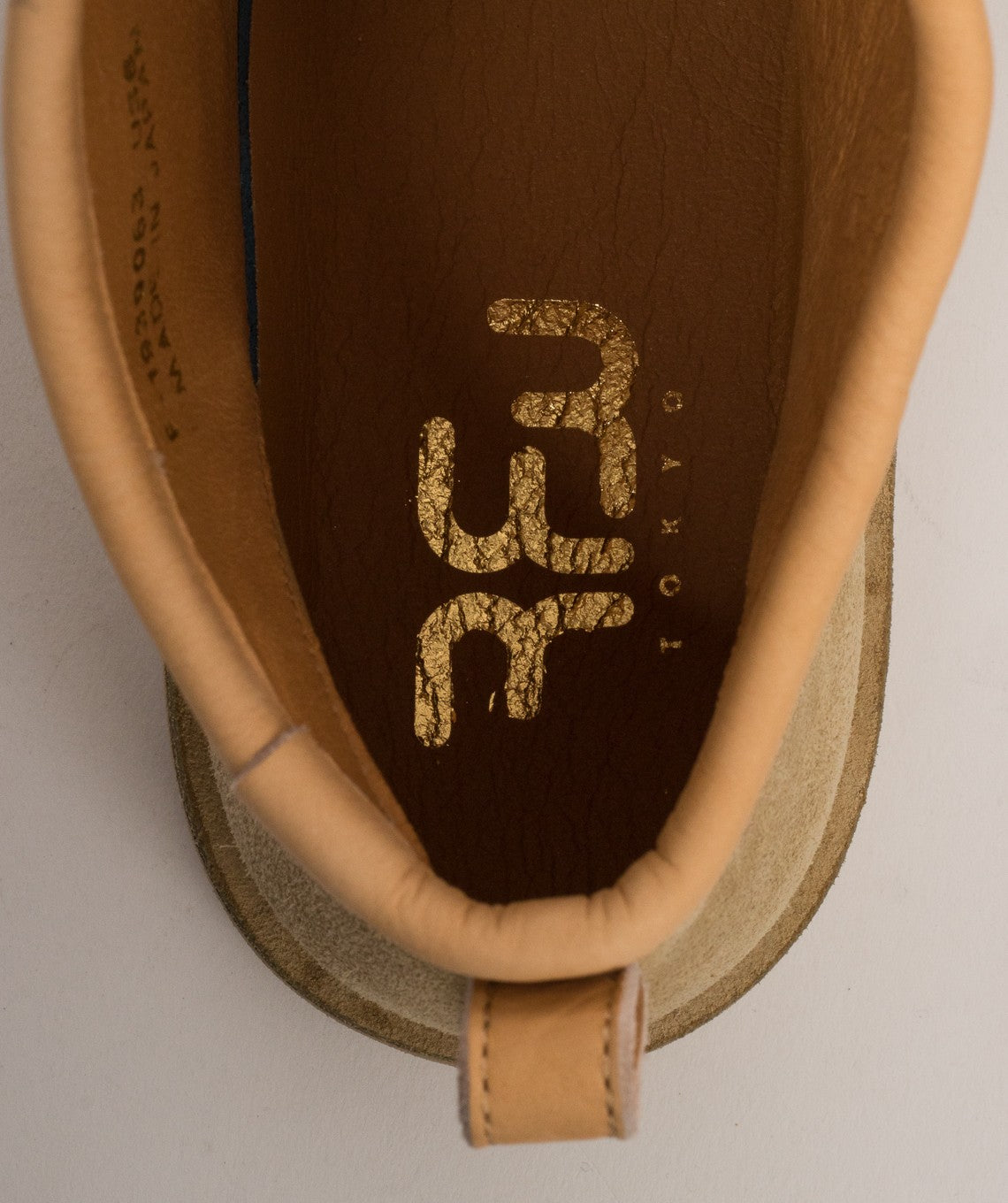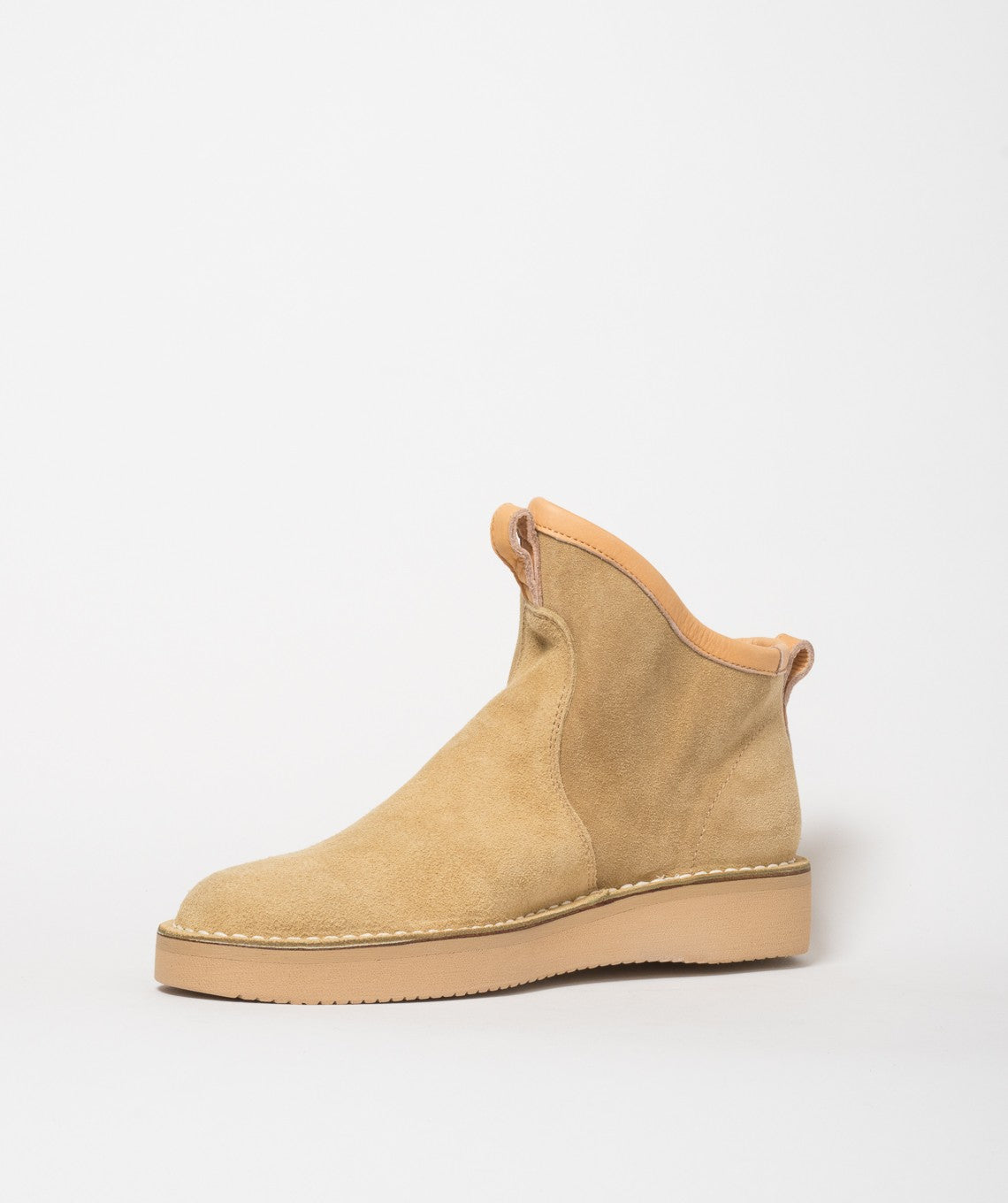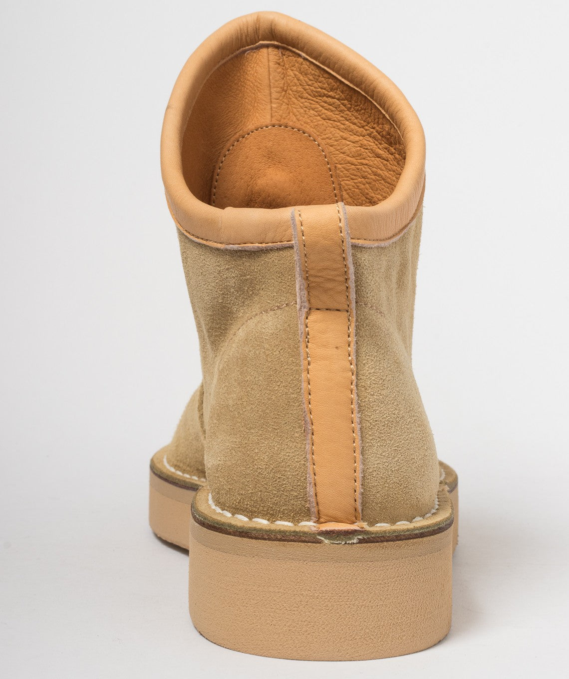 Beige suede mid-high boots made by Takashi Kanokogi. Minimal design, easy to wear.