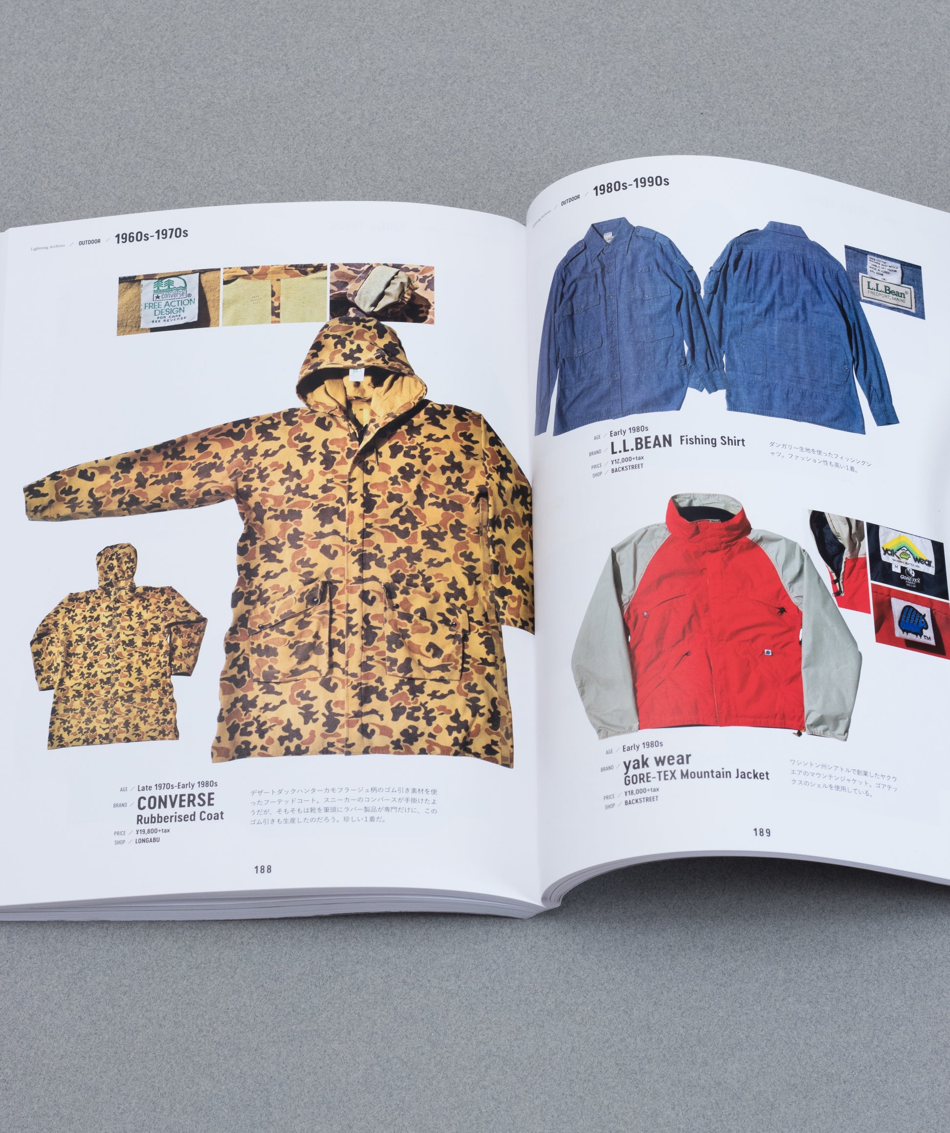 Vintage Outdoor Archives by Lightning, references all historical models, Rocky Mountain Featherbed (Christy Vest), Comfy, Eddie Bauer, LL Bean, Brown's Beach Jacket, Patagonia… from the 1900s to the end of the 90s. Essential for all lovers of vintage outdoor wear. It's a real encyclopedia. Published in Japanese