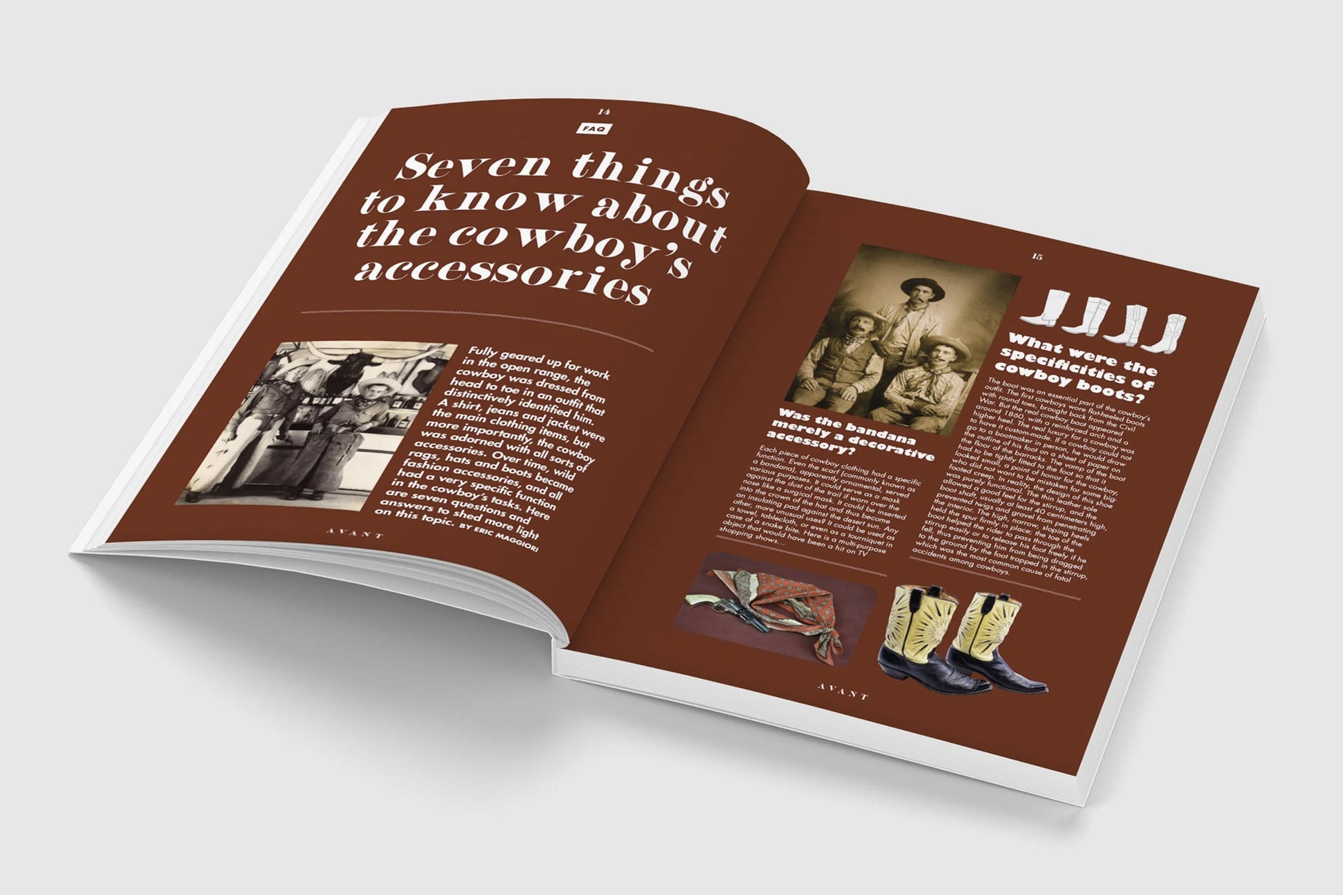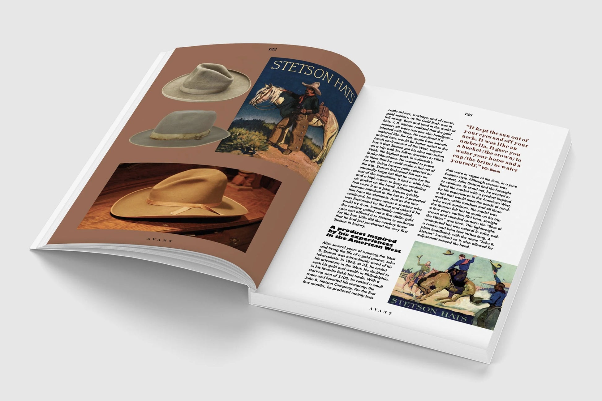 Bien sûr — et c’est la fonction première d’AVANT — nous n’oublions pas de parler vêtements et style, bien au contraire. Nous retraçons ainsi l’évolution du style western, en nous concentrant sur l’histoire de deux de ses pièces les plus emblématiques : la chemise western et le chapeau Stetson.