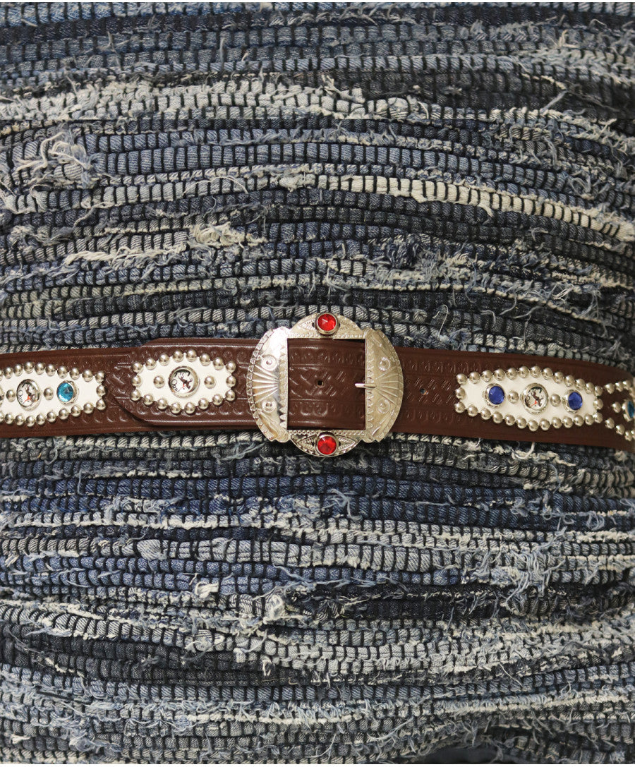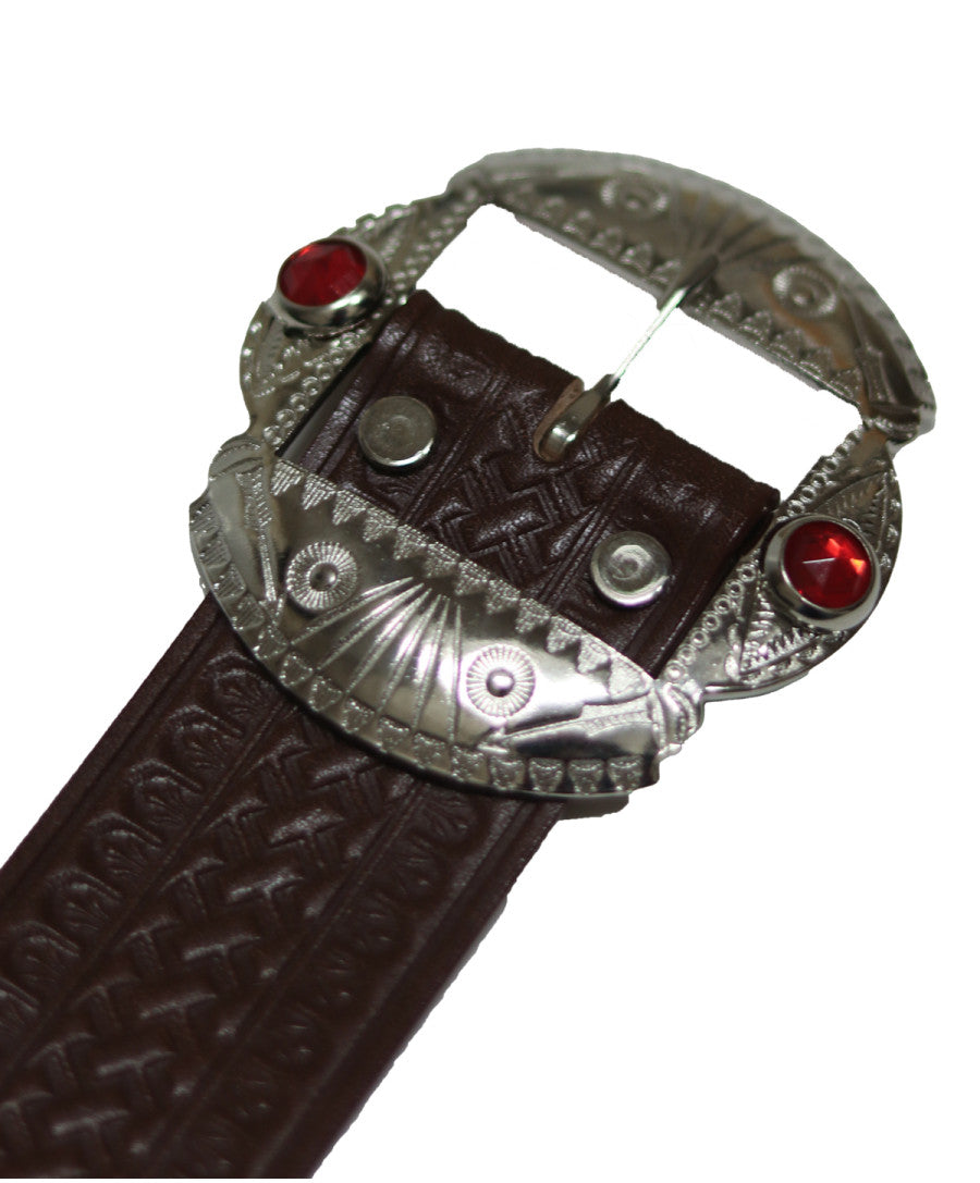 Ceinture western artisanale en cuir véritable, inspirée du style vintage des années 1930. La ceinture est gravée du motif traditionnel d'ACE.