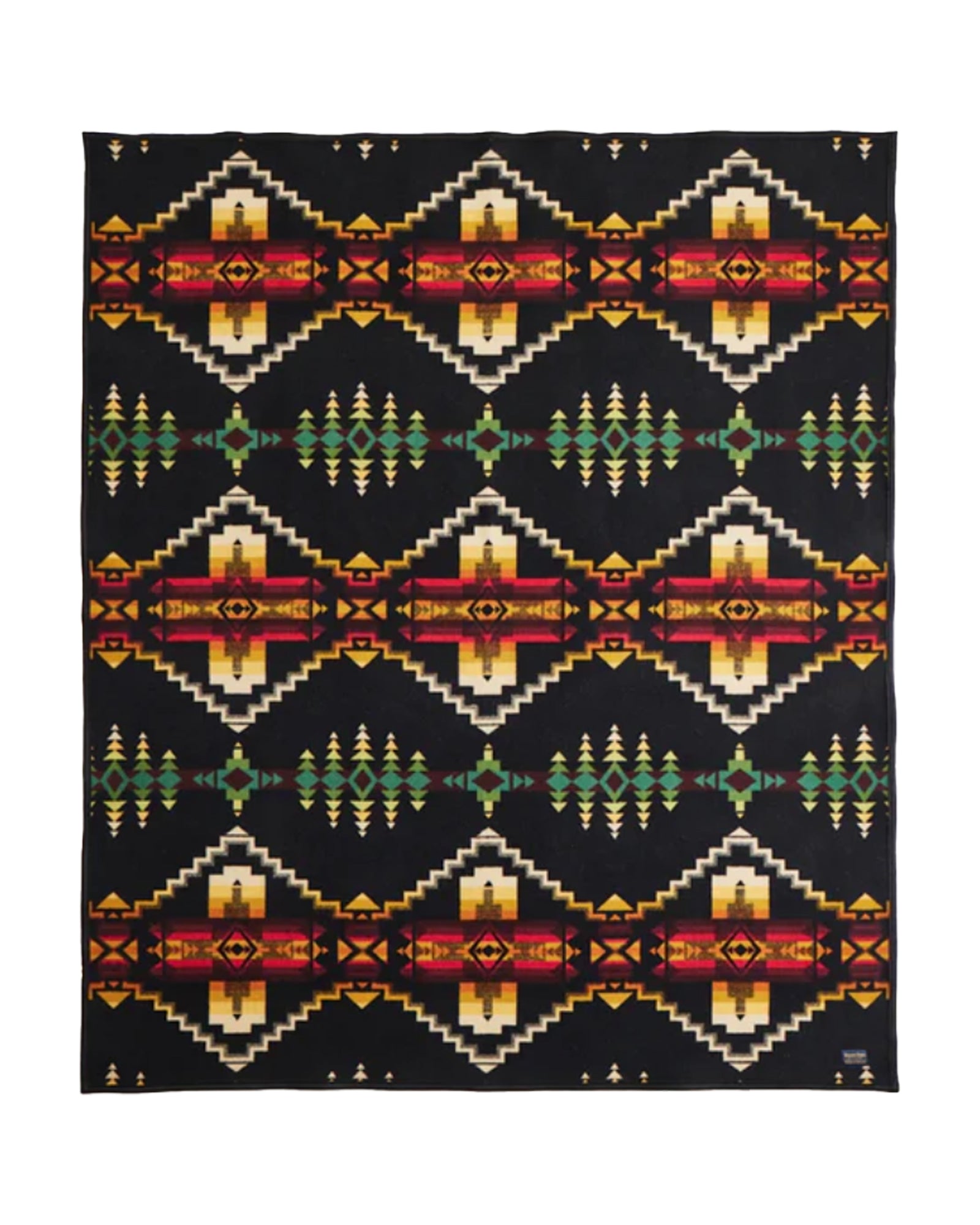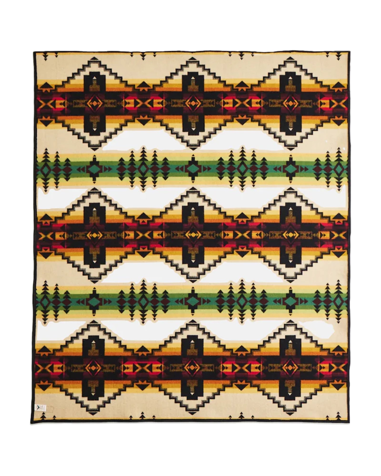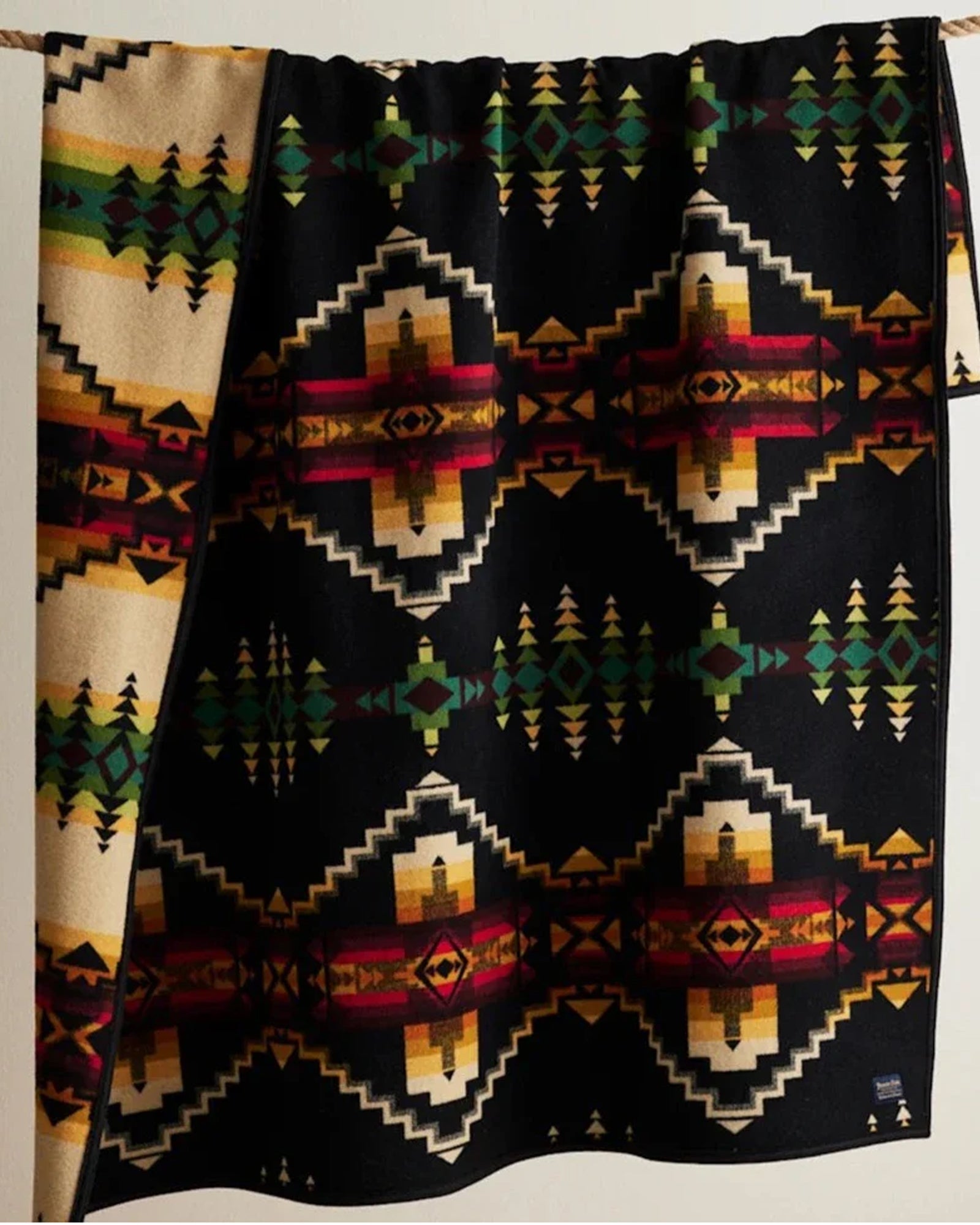 Couverture en laine imprimée d'intersections répétées dans un motif traditionnel à neuf éléments.
