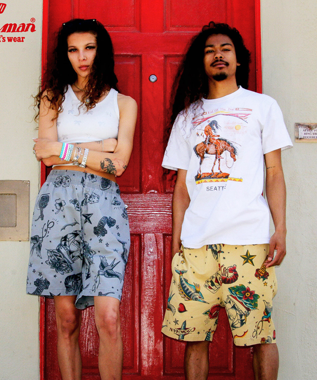 Short en tissu 100% coton avec le dessin du tatouage de l'artiste Marie.