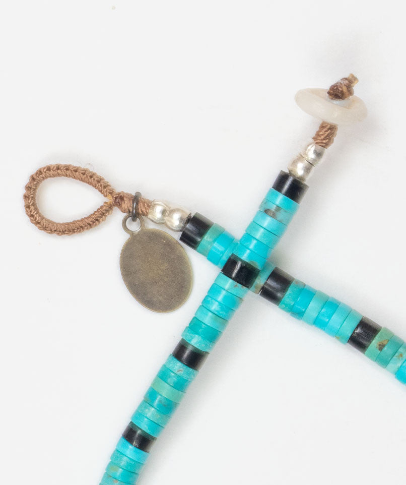 Bracelet inspiration Amérindienne de couleurs corail rouge orangé, , jais et turquoise. Le bouton coquillage sur le fermoir lui donne un aspect naturel.