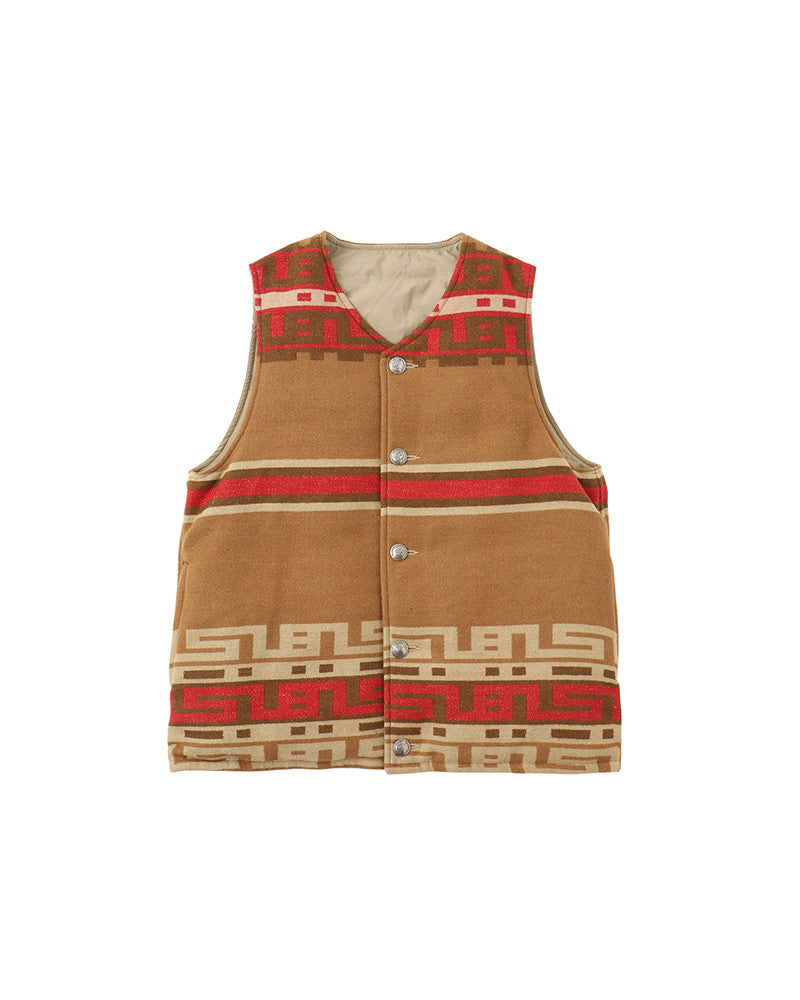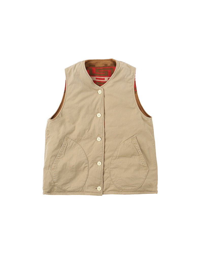 Un gilet réversible en duvet fabriqué à partir d'une couverture personnalisée en laine/lin/coton