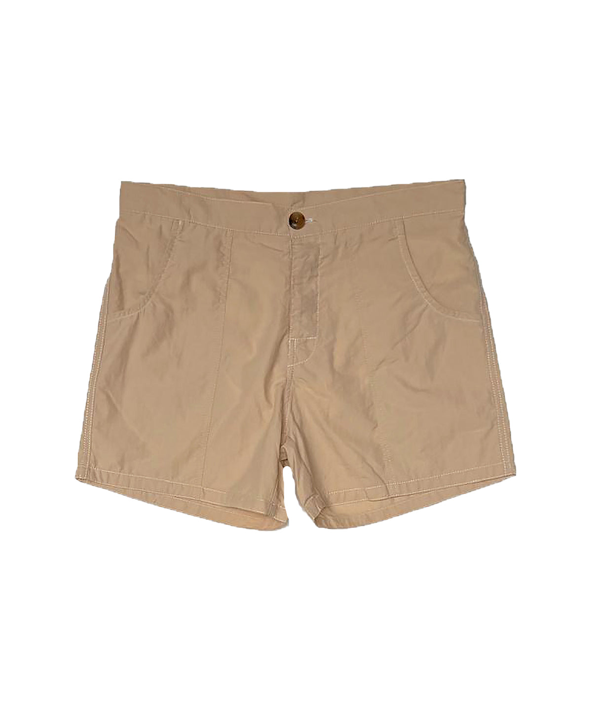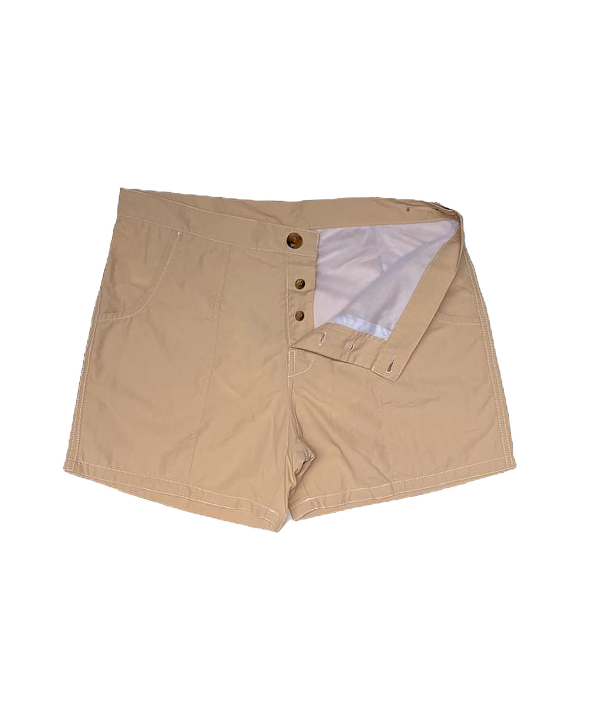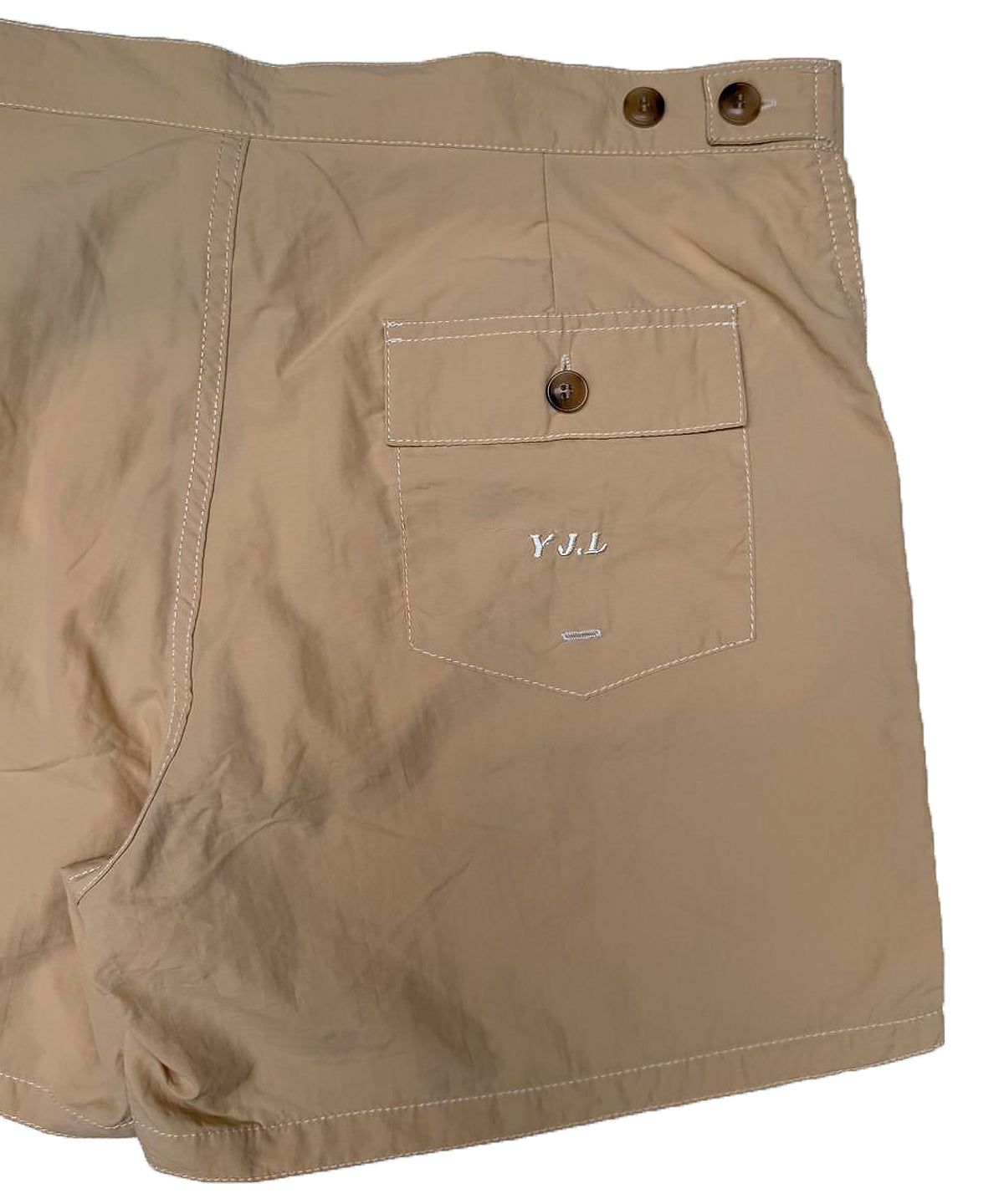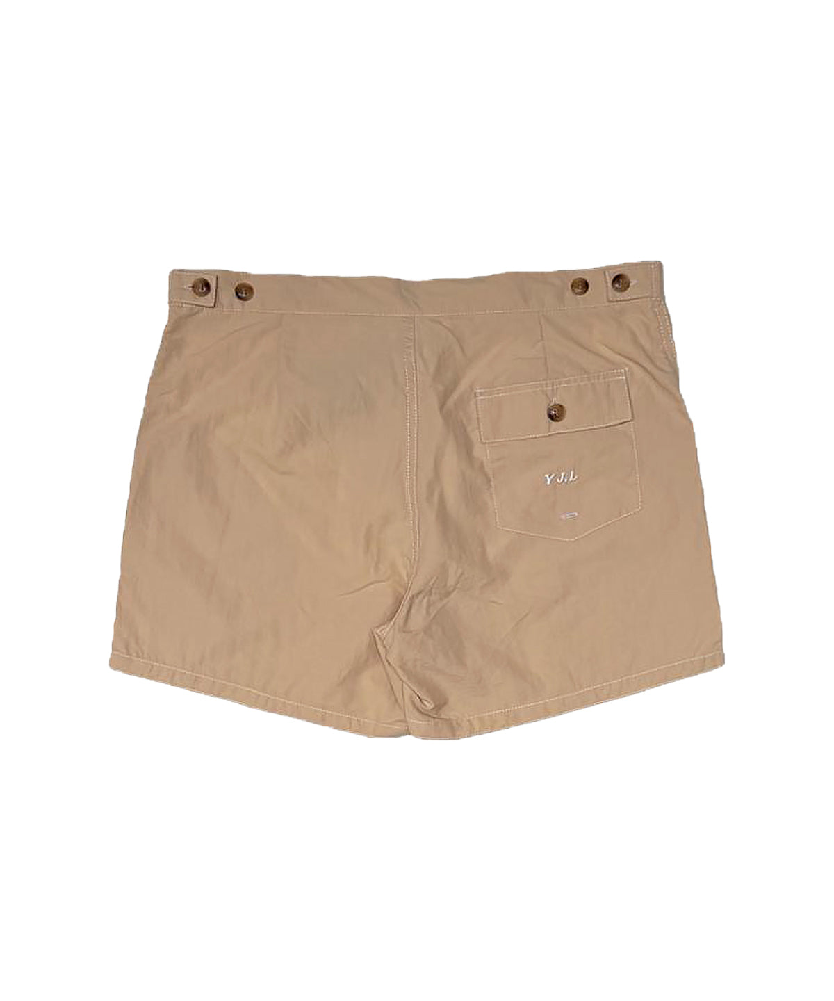Inspiré de la coupe « fatigue pants », ce short de bain revisite un classique militaire avec une touche d’élégance japonaise. Confectionné en 100 % coton, il se distingue par ses deux poches plaquées à l’avant, sa poche arrière discrète et ses patellettes latérales permettant d’ajuster la taille selon vos envies.